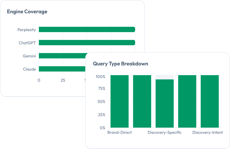 Pinpoint the areas hurting your AI visibility and gain in-depth technical insights across 100+ deterministic KPIs